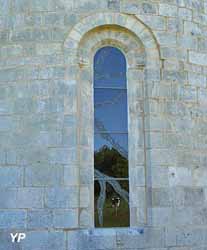 Son architecture simple se compose d'une nef unique, assez haute, voûtée d'un berceau brisé. La nef ne porte pas de fenêtre dans les murs latéraux. Elle n'est éclairée que grâce aux trois baies du choeur à l'est et une fenêtre à l'ouest, qui font converger la lumière vers l'autel. Des vitraux contemporains, conçus et fabriqués par Françoise et Philippe Riffaud de l'atelier Saint Joseph à Ruffec, ont été installés en 2016.