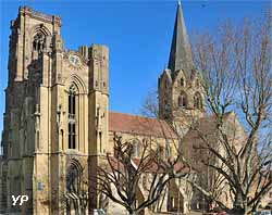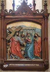 ![]() Rosace et grandes orgues (doc. Yalta Production) | ![]() Dalle funéraire en grès jaune du chevalier Werner Falcke de Munsweiler (XIVe s.) (doc. Yalta Production) |