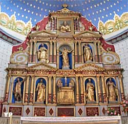 Difficile de ne pas tomber sous son charme quand on la voit en traversant le village. Et l'intérieur est à l'avenant, avec ses 2 étages de tribunes latérales en bois et surtout son magnifique retable, comme l'ensemble du décors.