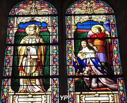 Les fenêtres hautes de l'abside sont ornées de vitraux réalisés par l'atelier Lobin de Tours en 1992. Clovis et son épouse Clotilde y sont représentés, fondateurs de la confrérie royale de Notre-Dame de Ferrières. Ce sont des personnages qui ont marqué profondément l'abbaye de Ferrières. Selon une belle légende, c'est à Ferrières que Clovis aurait rencontré sa future épouse Clotilde.