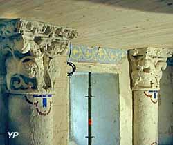 La chapelle comprend une nef limitée par quatre colonnes et un chœur surélevé dont l’entrée était gardée par deux colonnes. Les chapiteaux qui couronnent ces six colonnes ont chacun leur propre décor:monstres affamés,animaux fantastiques,et divers motifs floraux.