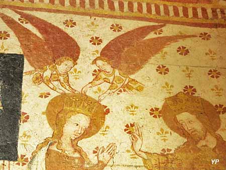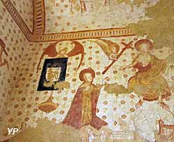 À l'est: Annonciation et couronnement de la Vierge; À l'ouest: La résurrection des morts et le Jugement dernier; Au sud: des saints; La voûte en berceau brisé: Concert d'anges musiciens. Quinze anges aux ailes déployées sont représentés en duo, l'un présentant un texte écrit, l'autre jouant d'un instrument de musique.