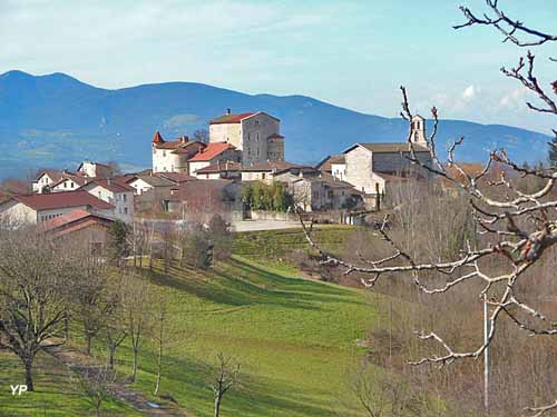 L'église actuelle a été construite à partir de 1680, proche des habitations regroupées autour du château, ceci suite à la destruction du village ancien, lors des Guerres de Religion en 1573.