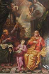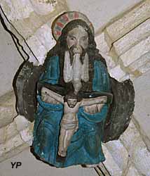 ![]() Église Saint Bénigne - Prédestination de la Vierge de Gilquin (XVIIIe s.) (doc. G. Wetzel) | ![]() Église Saint Bénigne - Trinité ornant la clef de voûte de la chapelle Sainte Anne (doc. G. Wetzel) |