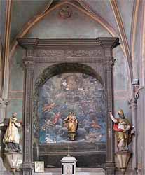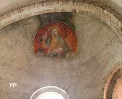 À l'intérieur, dans l'abside on remarquera une peinture murale du Christ en majesté.