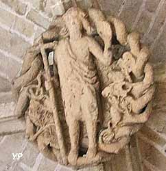 ![]() Clé de voûte- Jeanne de Navarre dans Guérande (doc. Yalta Production) | ![]() Église Saint-Guénolé - clé de voûte, les 7 péchés capitaux (doc. Yalta Production) |