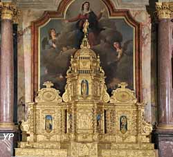 ![]() Maître autel et son retable (doc. Yalta Production) | ![]() Tabernacle du maître autel (doc. Yalta Production) |