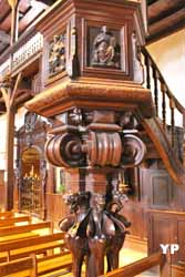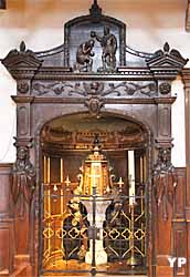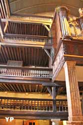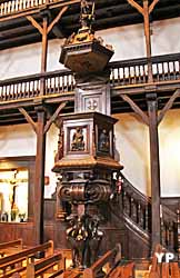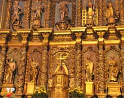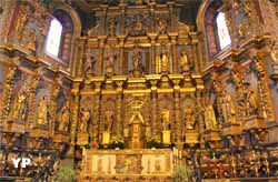 Eglise remarquable, autant par ses tribunes latérales en bois, typique du pays basque, mais encore plus par le décor du choeur et son retable en bois doré du XVIIe siècle.