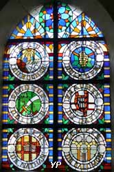 ![]() Vitraux du Rosaire (doc. Association des vitraux de l'abbé Deligny) | ![]() Vitraux de la création du monde (doc. Association des vitraux de l'abbé Deligny) |