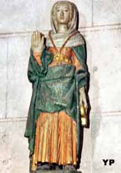 A l'intérieur: 5 chapiteaux romans et 4 statues du début XVIe en bois polychrome représentant des Vertus (provenant de la Cathédrale d'Albi).