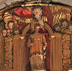 À l'intérieur une partie du grand retable de style baroque au riche décor doré est bordé de chaque côté par deux colonnes torves provient de la chapelle du couvent des Récollets . Il est entouré de deux autels dorés.
