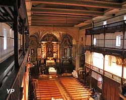 Sa nef unique avec une voûte en bois comprend 3 galeries en charpente, typique des églises labourdines.