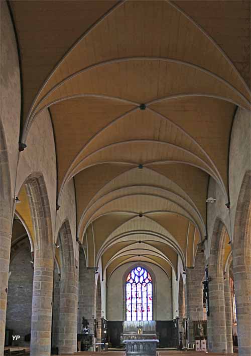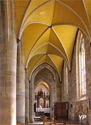 A l'intérieur, le tombeau du missionnaire breton du XVIIe siècle, Dom Michel Le Nobletz, transféré en 1858. Les vitraux du choeur datent du XVIe siècle.