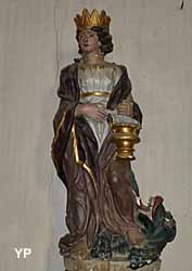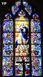 Eglise du XIIIe siècle en forme de croix latine, style ogival. Porte monumentale construite en style flamboyant. Le clocher et le portail furent détruits par un incendie et reconstruits en 1681. Tableaux parmi lesquels figurent des oeuvres de l'école française du XIIIe siècle. Retable de style corinthien. Une fenêtre est encore décorée d'anciens vitraux représentant le Crucifix et la Madeleine.
