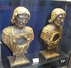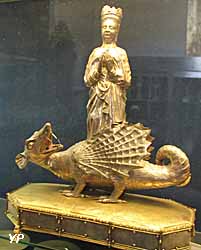 ![]() Eglise Sainte-Marguerite - ancien mécanisme de l'horloge du clocher (doc. Yalta Production) | ![]() Eglise Sainte-Marguerite - saint Marguerite au dragon (argent et vermeille sur terrasse de cuivre argenté et doré - XVe-XVIe s.) (doc. Yalta Production) |