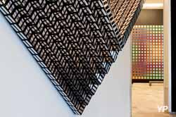 Seize modules à base hexagonale sont imbriqués dans un gigantesque jeu de construction utilisant la technologie et les matériaux privilégiés par le mouvement moderne. Cette structure alvéolée présente 44 intégrations architecturales monumentales, dont le fil conducteur est l'art optique.
