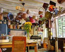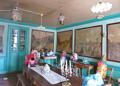 Cette maison d'artiste est restée "dans son jus". Dans ce décor d'un autre siècle, les oeuvres de Jill Culiner - travail satirique et critique sur le comportement humain - côtoient photos et histoires (vraies ou fictives ?) des anciens clients de l'hôtel.