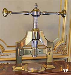 ![]() Hôtel de Bourvallais - Presse à sceaux (doc. Yalta Production) | ![]() Hôtel de Bourvallais- Presse à sceaux (doc. Yalta Production) |