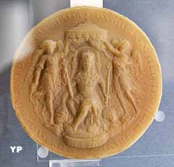 ![]() Hôtel de Bourvallais - salle des sceaux - Décret de l'Assemblée nationale contenant la Déclaration des Droits de l'Homme et du Citoyen signé par Louis XVI le 3 septembre 1791 (doc. Yalta Production) | ![]() Hôtel de Bourvallais - cachet de Louis XVI (doc. Yalta Production) |