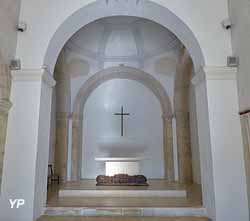 À visiter également, une église cistercienne du XVIIème siècle (seul bâtiment conventuel visitable) dont le choeur a été bâti sur une caverne primitive. Vous admirerez son portail roman du XIIème siècle classé Mobilier Historique, sa coupole octogonale, ses conques rappelant le passage des pélerins de Compostelle, ses vitraux contemporains reprenant néanmoins le symbolisme qui caractérise cet édifice depuis ses premiers fondements.