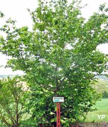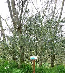 Dans la proximité du jardin 16 arbres ou arbustes sont décrits sur des panneaux comportant le texte en clair et en braille; une feuille en relief.