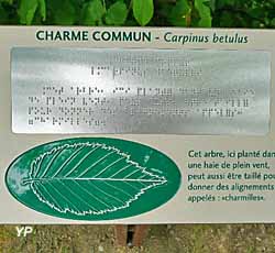![]() Charme commun et son panneau en braille (doc. Association Rando-Plaisirs) | ![]() Charme commun et son panneau en braille (doc. Association Rando-Plaisirs) |