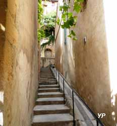 Le village ancien est perché, et il faut grimper doucement par les ruelles fleuries jusqu'à Notre-Dame-de-la-Roque, église du castrum du XIe siècle à 1444, devenue chapelle ordinaire lorsque la paroisse fut déplacée à Saint-Pierre, près du cimetière. Au bout du chemin, de l'à-pic proche de la chapelle Notre-Dame, vous découvrirez le village blotti au pied de la falaise, et, au-delà, un paysage magnifique s'étendant jusqu'aux collines de Concors et des Ubacs, et au loin, le Pic des Mouches, sommet de la Sainte-Victoire. La petite route D11 traverse ces massifs par le col du Sambuc et permet de rejoindre Vauvenargues en parcourant une campagne préservée, alternant les bois et les cultures.