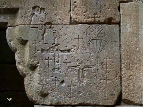 ![]() Porte des Tours - lecture des graffiti templiers (doc. Domme tourisme) | ![]() Porte des Tours - lecture des graffiti templiers (doc. Domme tourisme) |