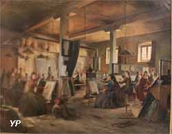 ![]() Vierge trônante avec sainte Valérie et un ange (Louis Bourdery, 1886) (doc. Yalta Production) | ![]() Le cours du matin des jeunes filles à l'Ecole nationale d'arts décoratifs de Limoges (Auguste Aridas, 1889) (doc. Yalta Production) |