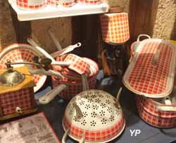 Des centaines d'objets ménagers anciens en tôle émaillée présentés, mis en scène, expliqués dans toute les pièces de la maison...