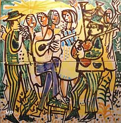 ![]() Quatre tables gigognes à décor breton (Émile Gallé, 1900) (doc. Yalta Production) | ![]() Fête en Bretagne (René Quéré, 1960) (doc. Yalta Production) |