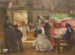 ![]() L'arrivée de la diligence à Quimper-Corentin sous le Directoire (Jules Noël, 1873) (doc. Yalta Production) | ![]() Musée départemental Breton (doc. Yalta Production) |