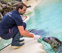 Arrêtez-vous un instant devant le bassin des phoques, les chouchous de l'Aquarium ! Le repas des phoques est un moment fort de la visite où petits et grands se régalent à les voir jouer et engloutir des kilos de maquereaux : tous les jours à 10h30 et 17h.