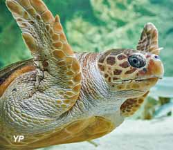Après un plongeon dans la galerie des cétacés et l'histoire de la pêche au Pays Basque, vous pénétrez dans la grotte des tortues pour un face à face surprenant avec Alice la tortue caouanne...