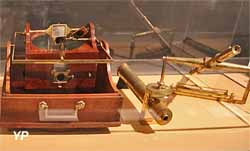 ![]() Cercle de Borda (doc. Yalta Production) | ![]() Compas de variation inventé par Jean-Baptiste Degaulle (1777) (doc. Yalta Production) |