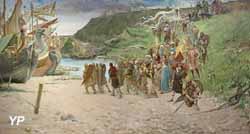 ![]() Bât d'âne avec cagettes contenant quatre canes à lait (doc. Yalta Production) | ![]() Les Normands revenant du pillage (Henri-Georges Charrier, 1881) (doc. Yalta Production) |