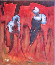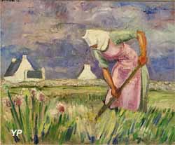 ![]() Bretonne au champ (René-Yves Creston, 1943) (doc. Yalta Production) | ![]() Enseigne de l'ancienne pension Gloanec (Hermanus-Franciscus Van den Anker et Fernand Quignon, 1880) (doc. Yalta Production) |
