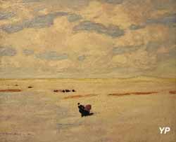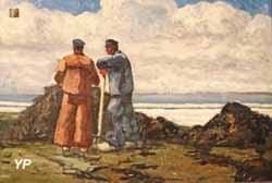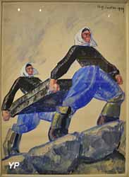 ![]() Bretonne dans la dune (Jean-Julien Lemordant, 1905) (doc. Yalta Production) | ![]() Mise des civières à terre - Kerinis, Locmariacquer (René-Yves Creston, 1929) (doc. Yalta Production) |