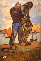 ![]() Port breton, le départ des pêcheurs (Eugène-Pierre Savigny dit Pierre de Belay, 1937) (doc. Yalta Production) | ![]() Les pêcheurs à Concarneau (Eugène-Pierre Savigny dit Pierre de Belay, 1937) (doc. Yalta Production) |