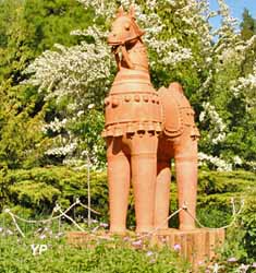 ![]() Cheval provenant du musée du quai Branly (doc. Julie Danet) | ![]() Aire de jeux (doc. Julie Danet) |
