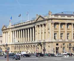 La place de la Concorde est la plus vaste de Paris. Elle est bordée à l'opposé de la Seine par les 2 ensemble symétriques, l'un occupé par l'hôtel de Coislin (actuellement l'Hôtel de Crillon et l'Automobile Club), et l'autre par l'Hôtel de la Marine.