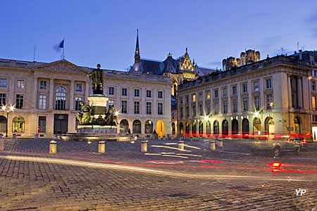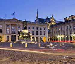 Au centre de la place, se trouvait un monument dédié à Louis XV, œuvre du sculpteur Pigalle. La statue royale a été détruite à la Révolution et remplacée en 1818 par un bronze de Pierre Cartellier qui représente Louis XV en empereur romain. Les sculptures du piédestal, dues à Pigalle, ont été conservées.