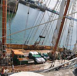 ![]() La Recouvrance, aviso-goélette, propriété de la ville de Brest (doc. Yalta Production) | ![]() La Recouvrance, aviso-goélette, propriété de la ville de Brest (doc. Yalta Production) |