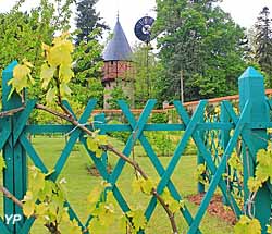 Une superbe éolienne Bollée, de l'autre côté du mur, domine toujours fièrement les parcelles du jardin ; elle alimentait en eau le château et ses dépendances, donc le potager.