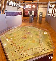 ![]() Vestiges des thermes gallo-romains de Gisacum (doc. Philippe Dutel) | ![]() Centre d'interprétation du site archéologique de Gisacum, maquette de la ville qui tient son originalité de son urbanisme unique dans le monde romain et de sa forme hexagonale (doc. Philippe Dutel) |
