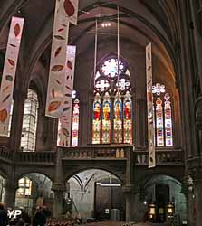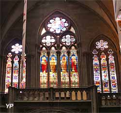 Il abrite des vitraux provenant de l'église médiévale préexistante, réparties en trois cycles : "la venue du Christ", "la Passion du Christ" et "le triomphe du Christ".