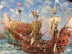 ![]() Tour Tanguy - Musée du Brest d'avant-guerre (doc. Yalta Production) | ![]() Combat de la Marie Cordellière contre la flotte anglaise (doc. Yalta Production) |