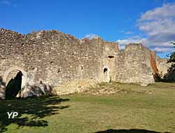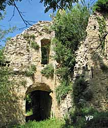 la fin du XIe siècle ou au début du XIIe siècle, les Adhémar construisent un château sur l'emplacement d'un village alors peut-être encore habité. Situé au point culminant de l'éperon, le château - dont la présence est attestée en 1138 - protège le village du côté où l'assaillant pouvait installer le plus facilement ses machines. Une partie de l'habitation seigneuriale date du XIIe siècle mais elle a subi de nombreux remaniements, notamment à l'époque des armes à feu. On voit particulièrement le crénelage des courtines qui a été noyé dans des surhaussements tardifs. Devant l'entrée orientale a été accolée une barbacane équipée pour arquebuses au XVIe siècle.