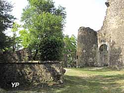la jonction du château et de la première enceinte se trouve la chapelle castrale, mentionnée en 1183. Elle devait en même temps servir d'église paroissiale au village qui était primitivement d'une superficie réduite. Il est vraisemblable que ce premier habitat a été clôturé dès le XIIe siècle. A la fin du XIIe siècle probablement, le village s'agrandit d'une nouvelle enceinte. On y pénètre par une porte conservée au midi. En 1337, date à laquelle la famille Adhémar vend ses parts au comte de Provence, le village d'Allan devient "commune adjacente" de Provence. En 1355, le nouveau seigneur fait édifier le donjon.