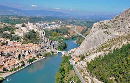 Sisteron bénéficie d'une situation géologique singulière, crée par la Durance qui a sciée en deux un plissement rocheux spectaculaire. Sur la rive droite, le rocher à pic de la Baume, et sur l'autre rive, reliée par l'unique pont, la ville de Sisteron dominée par la puissante citadelle perchée sur le reste du rocher.
